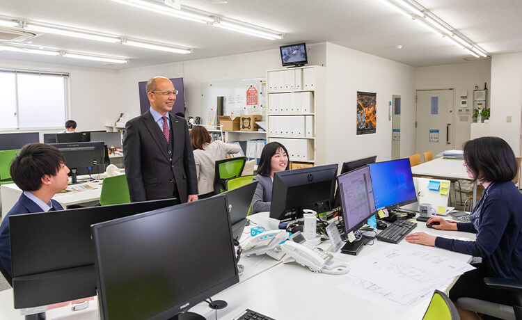 和建設の社内ではディスカッションを行う風景がよく見られます。