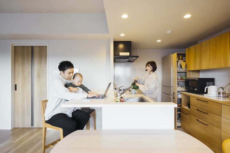 「ここで主人が仕事をすることもありますが、子どもが成長したらスタディスペースとして活用予定。料理をしながらでも目が行き届き、会話も楽しめそうですよね」(奥さま)