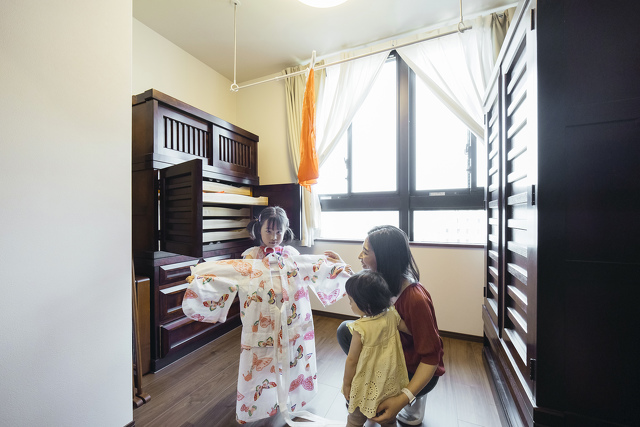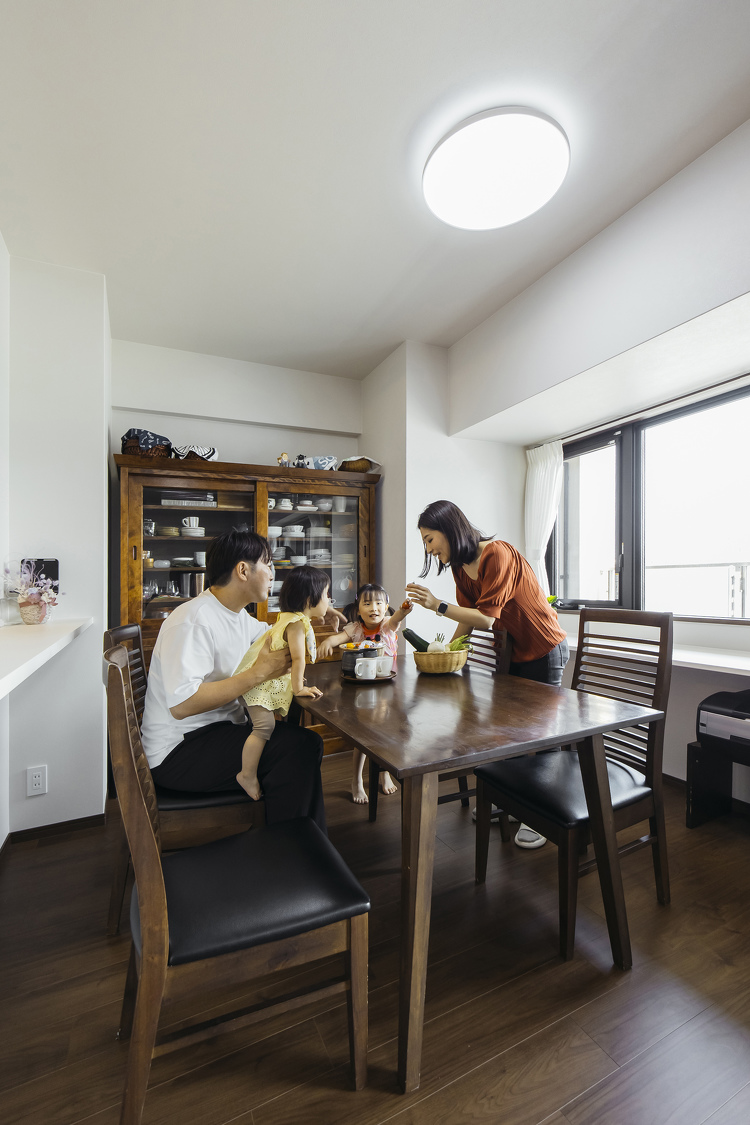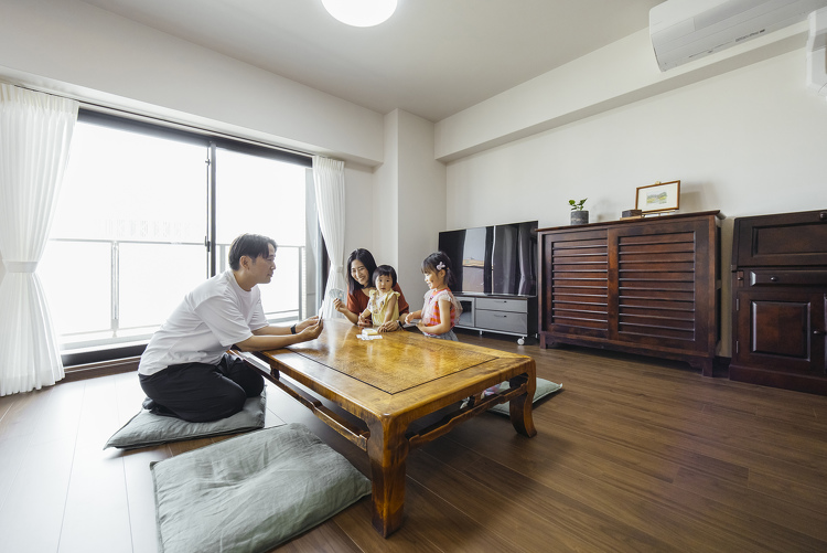「ここに越してきて、家族で過ごす時間が増えたように感じています。立地の良いこのマンションなら『公園に行こう!』と気軽に夫と子どもで出かけてくれますし、家族でお散歩感覚で日曜市へ出かけることも。家の中では座卓を囲んで家族みんなでトランプしたり、キッチンから夫と子どもの会話に参加したり。家族時間が増えました」(奥さま)