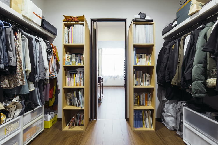 たとえば、ファミリークローゼットもそのひとつ。「成長した子どもが自室にこもりすぎないように」という思いから、各部屋のクローゼットや納戸を1か所に集約し、約4.7畳の広々とした空間を生み出しました。2部屋の洋室と廊下の計3方向から行き来できるようにし、家事動線もスムーズになるよう配慮。ハンガーポールも設置し、使い勝手よくカスタマイズしました。