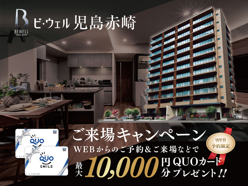 「ビ・ウェル児島赤崎」モデルルーム来場予約受付中! WEBからの来場予約・ご来場などで最大10,000円分のQUOカードをプレゼン...