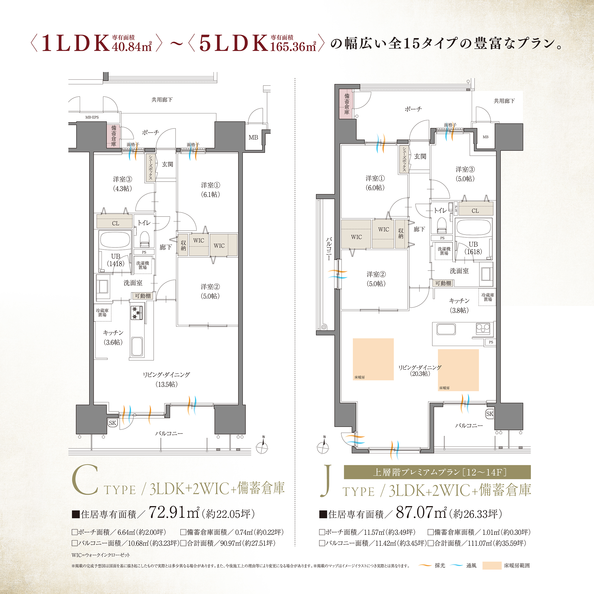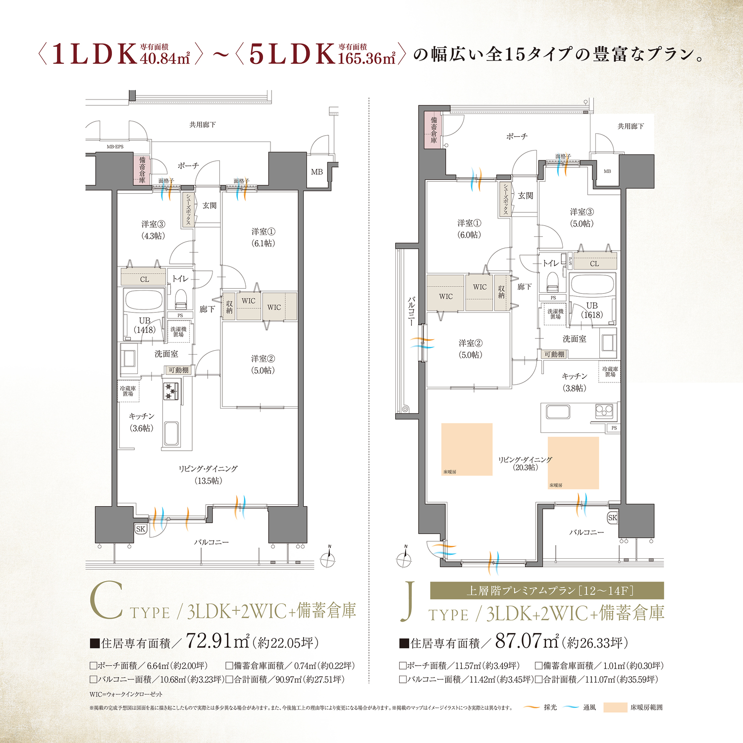 160㎡超のゆとりあるプランや、2階建メゾネット住戸など上層階限定プレミアム住戸もご用意。