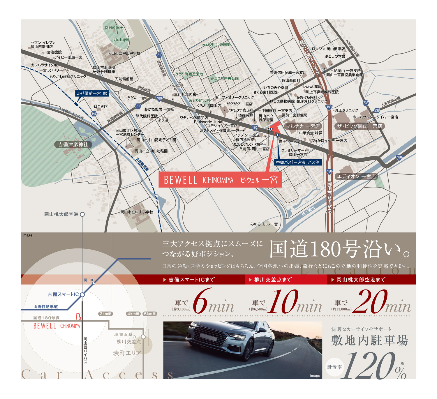 三大アクセス拠点にスムーズにつながる好ポジションの国道180号沿い。