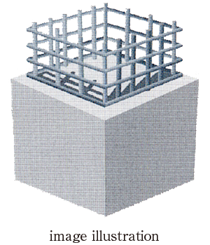 ラーメン構造(柱と梁を一体化して建物の骨組みを作る構造)における柱の帯筋は、継ぎ目のない「溶接閉鎖型帯筋」を採用。耐震性能を向上させています。