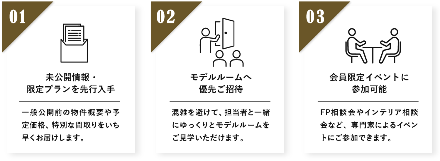 最新情報や物件の優先的なご案内などを希望のお客さまは個⼈情報保護⽅針をご確認の上、必要情報をご⼊⼒ください。
