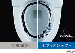特殊なガラス層を焼き付けることで、菌すら入り込めないナノレベルの便器表面。優れた耐久性があり、汚れがツルッと落ちて、お掃除ラクラク。