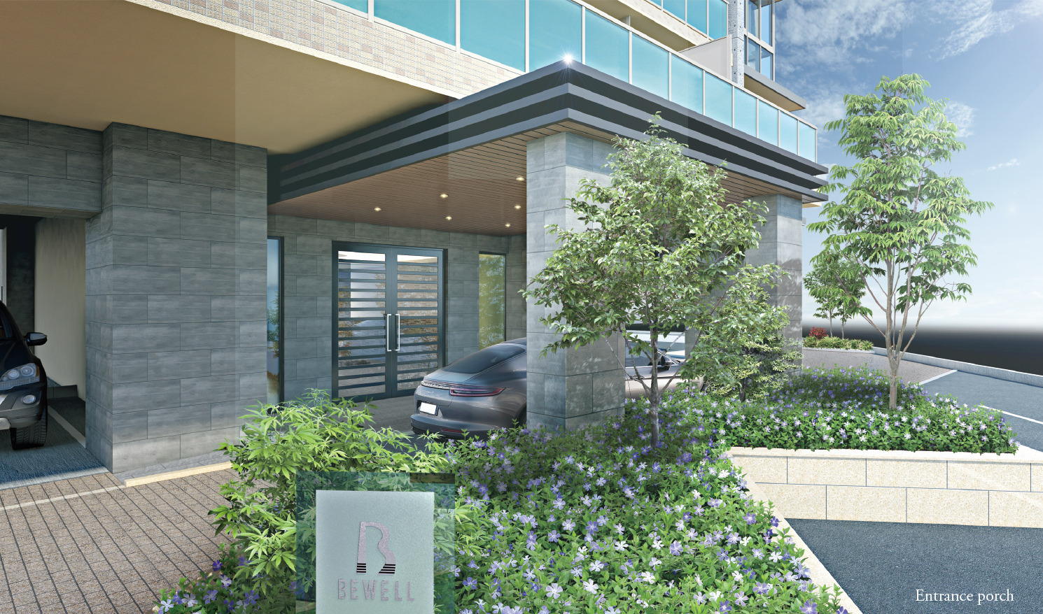 ※掲載のエントランスアプローチ&エントランスホール完成予想図は図面を基に描き起こしたもので、実際とは異なる場合があります。植栽はイメージで、特定の季節やご入居時の状態を想定して描かれたものではありません。