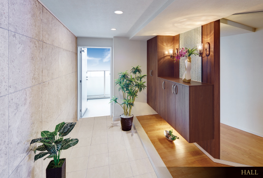生活シーンを一新させる、6帖超※のゆとりある玄関ホール。奥行が2.5〜3.5mある、ワイドバルコニー。 このほかにも数々の斬新かつ独創的な設計プランをご用意し、ときめきと感動に満ちた価値ある住まいをお届けします。
