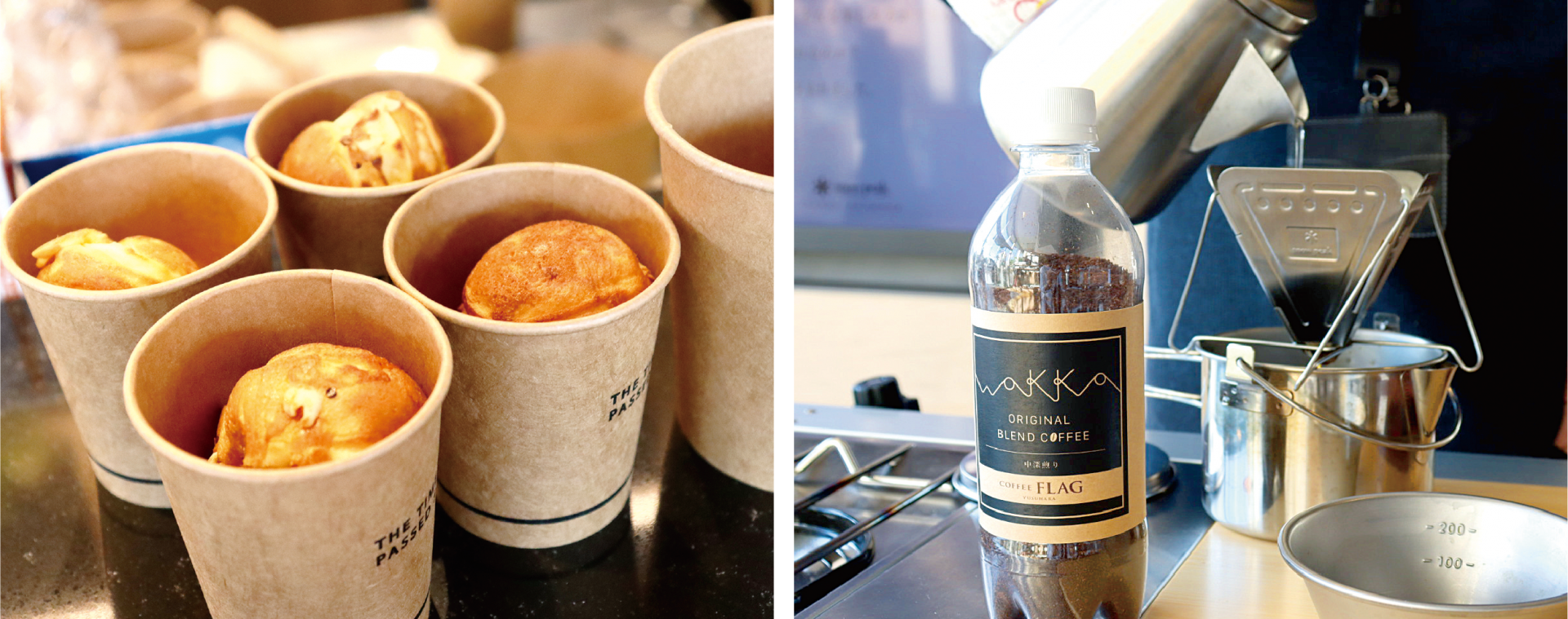 WAKKA店長の堀内がギアを使って作る「ベビーカステラ」とコーヒー店のバイトリーダー経験のあるスタッフが淹れる「WAKKAオリジナルブレンドコーヒー」をお味見!商品が気に入った際には、ご購入もいただけます。