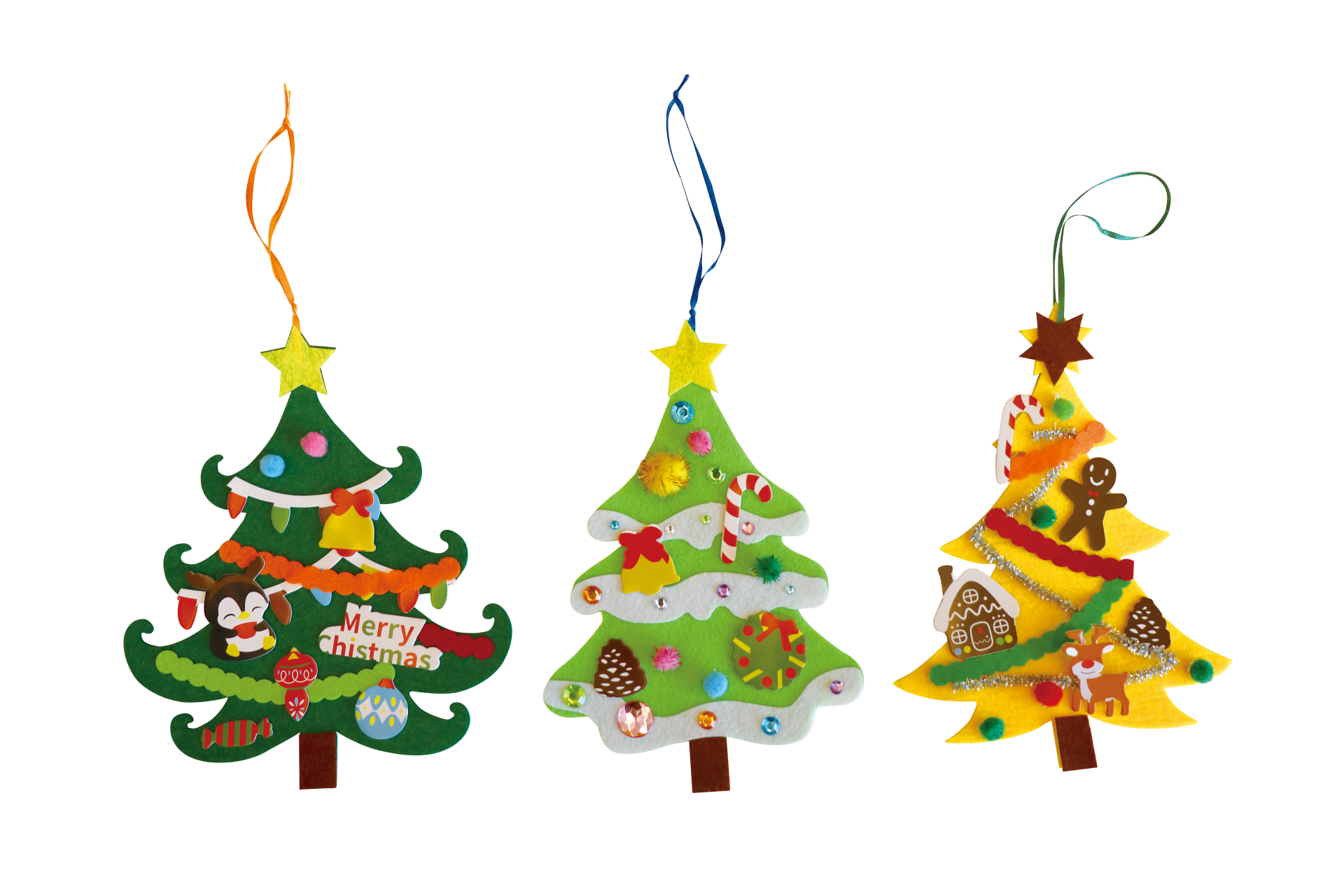 フェルト素材のツリーに、シールタイプのパーツをペタペタ貼って、自分だけのクリスマスツリーをつくろう!星やモールなどカラフルなパーツを自由に貼るだけで、かわいいオリジナルツリーが完成します。
