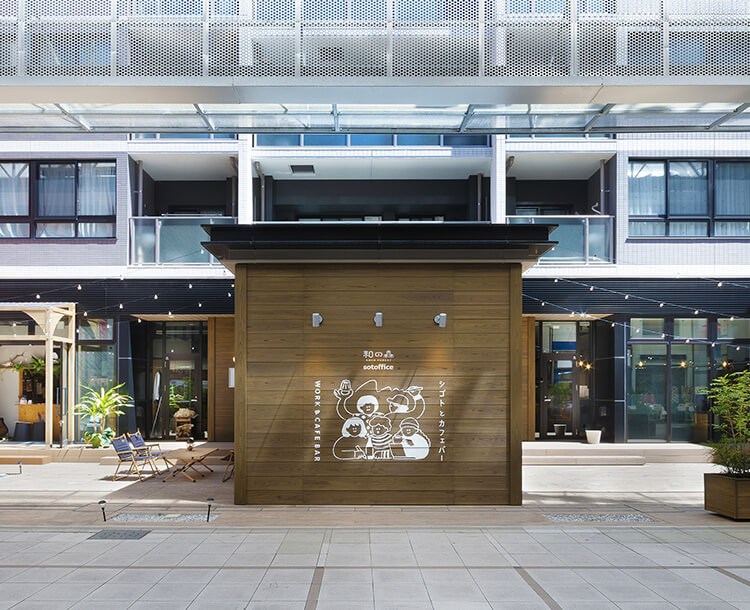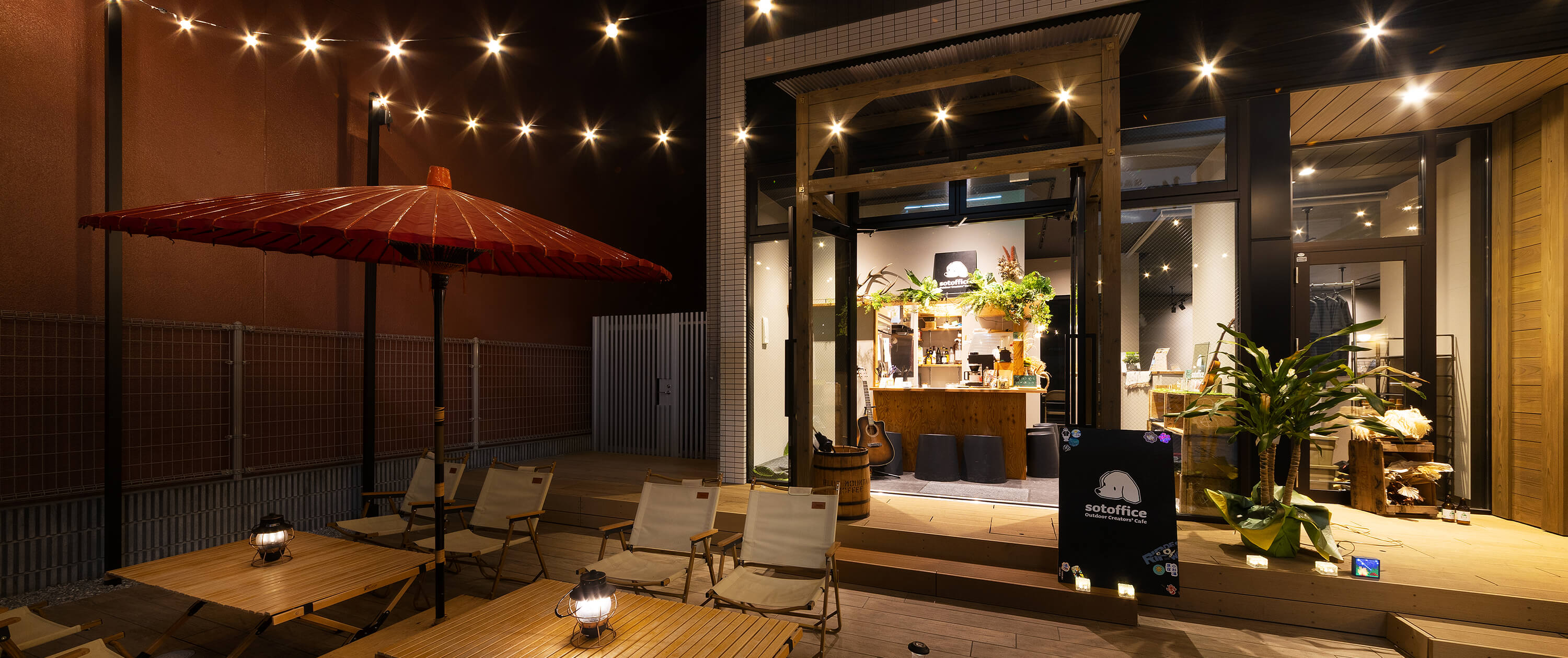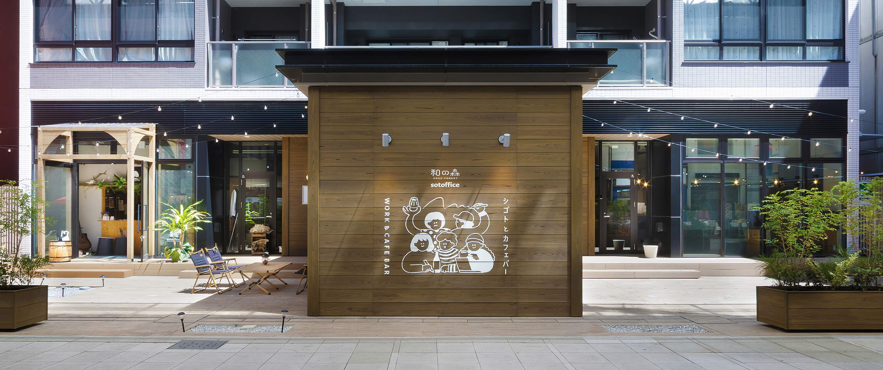 高知市中心部に位置する京町商店街に誕生した和の森sotofficeは、カフェバー併設のシェアオフィス、コワーキングスペース、レンタルスペースが一体となった複合型シェアスペースです。